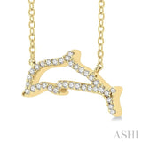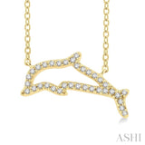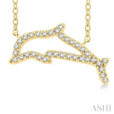 The dolphin has symbolic significance and is worn in jewelry for these aspects, which include hope, protection, guidance, harmony, peace, freedom, strength, and good luck. Many also wear it as a normal fashion accessory. This dolphin diamond fashion pendant offers a pretty option. It comes from the much sought after petite collection. The pendant features a dolphin frame that is beautified with diamonds. There are 35 prong set round cut diamonds embellishing the dolphin frame. An included CAT23 chain carries the diamond dolphin fashion pendant, both of which are crafted in 10 karat yellow gold. The total diamond weight is 1/10 ctw.
